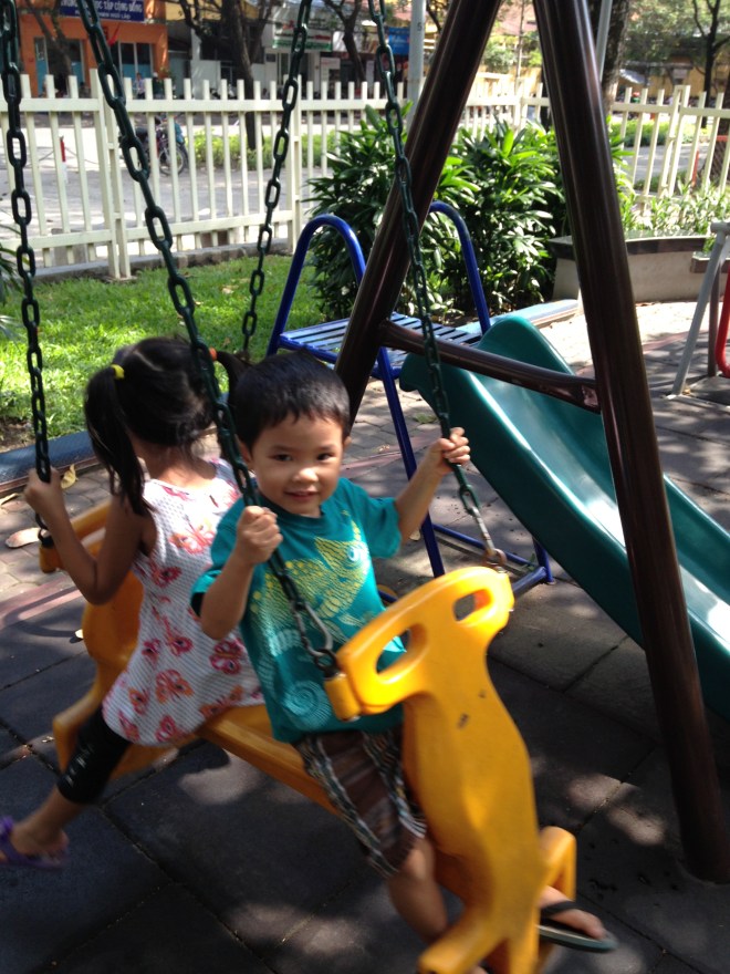 Kids enjoying themselves at a normal park
